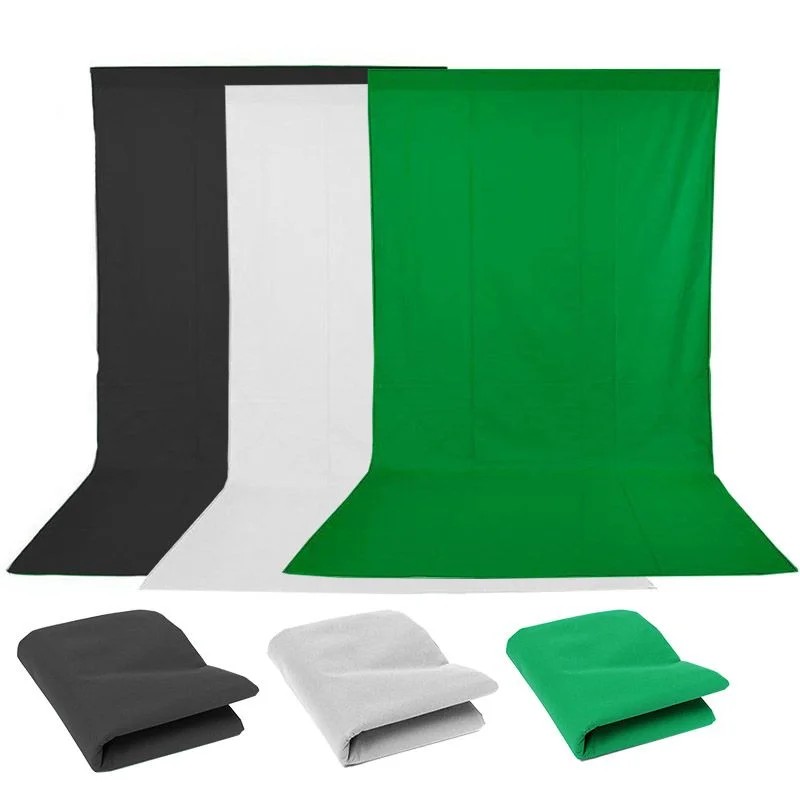 O tecido fundo infinito em algodão "Muslin" mede 2,84 metros de largura por 4,82 metros de comprimento, ideal para uso em estúdios fotográficos e de vídeo. Ele oferece um fundo liso e uniforme para garantir qualidade nas imagens, com cores branco, verde e preto para diversas necessidades de produção.